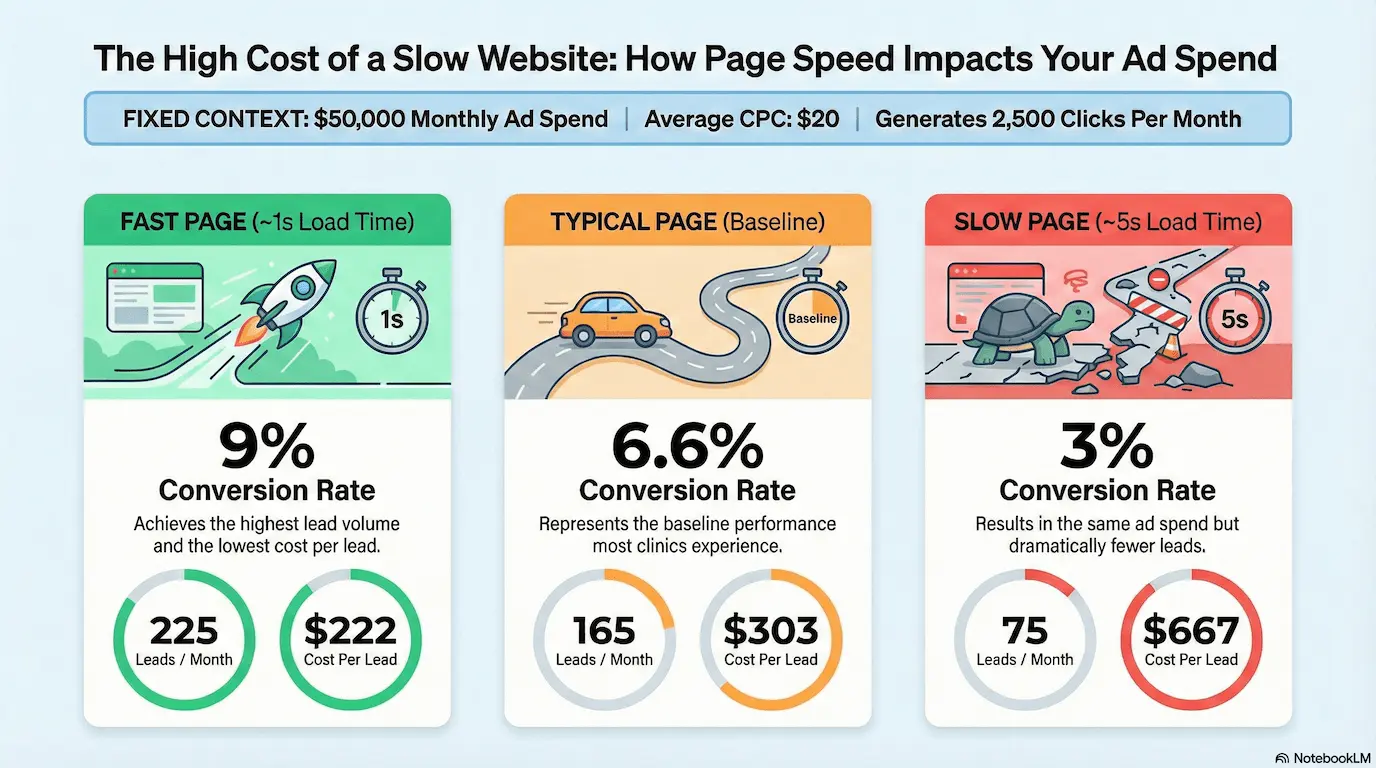 This visual exists for one reason: to show how a faster landing page can dramatically improve results versus a slower one, even when your traffic and budget stay exactly the same.
