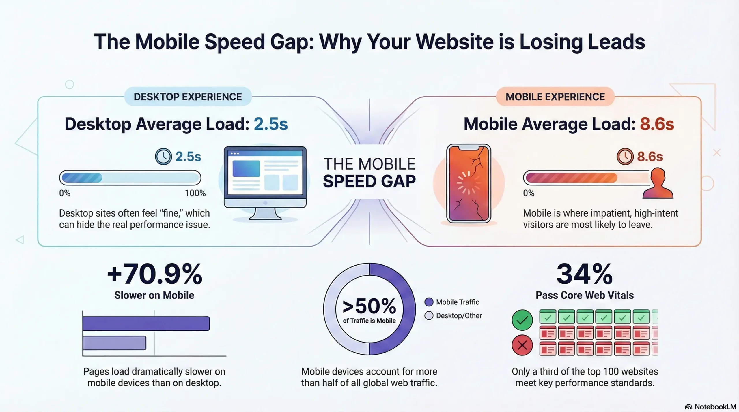 • Mobile makes it worse. Many visitors are on phones, and delays cause rapid abandonment.